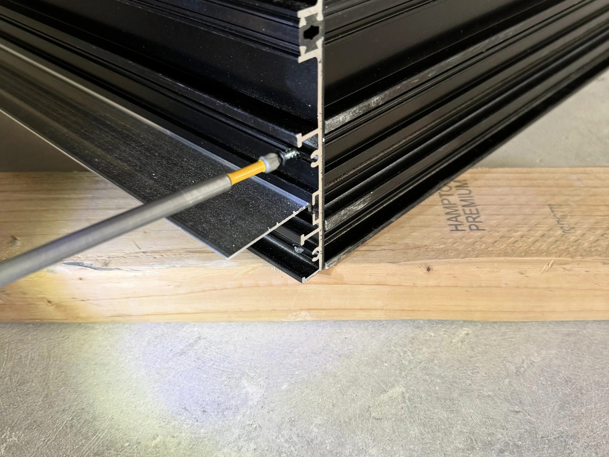Confirm the frame remains square during fastening to ensure proper panel operation.